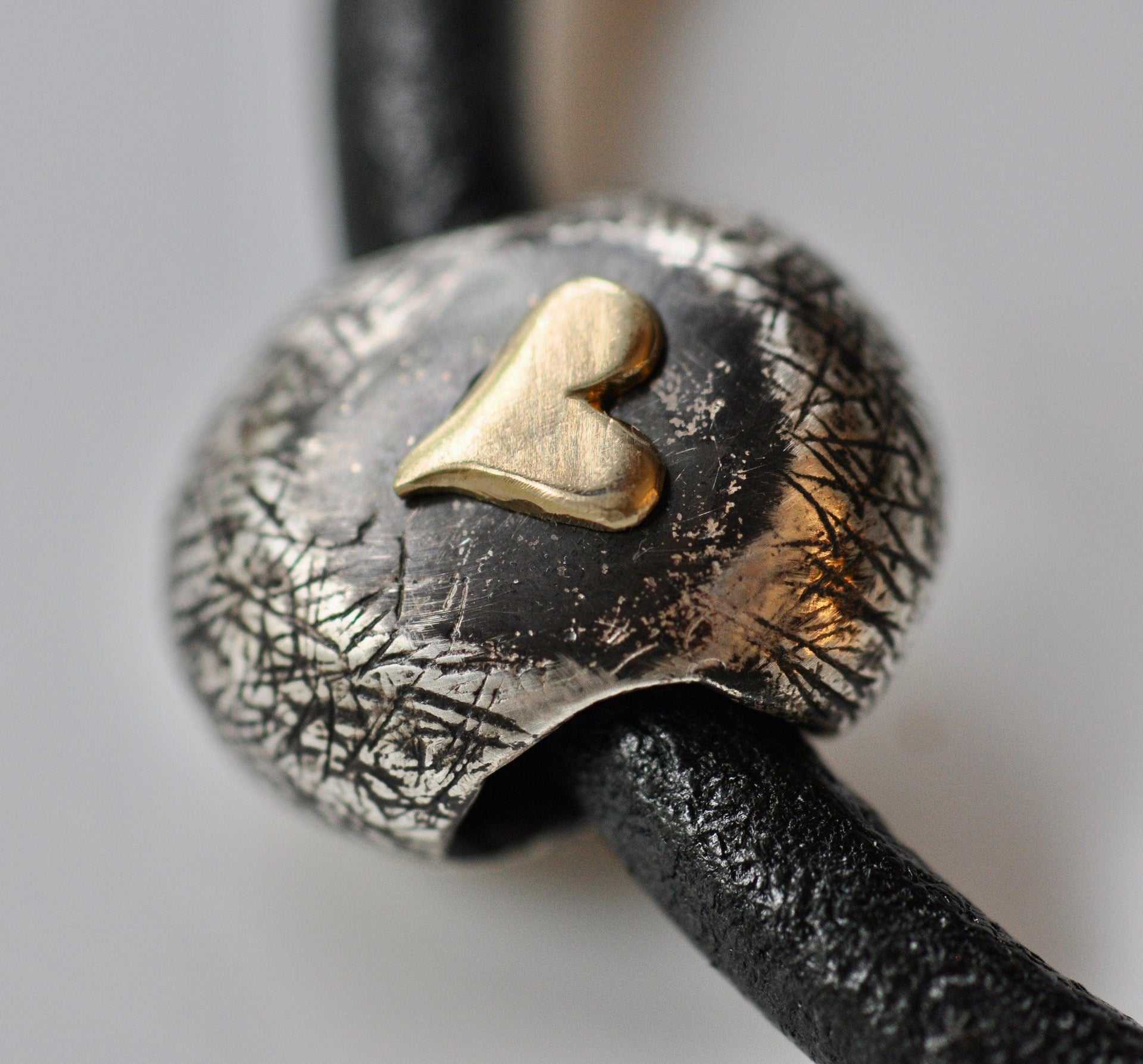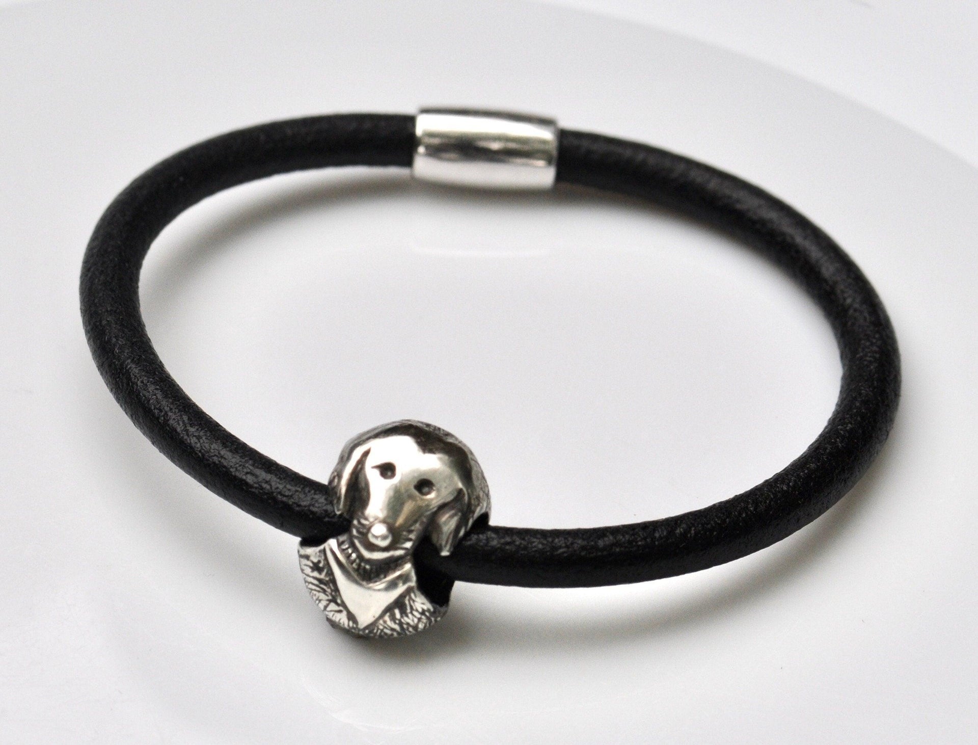 Fall in love with this Leather Bracelet With Sterling Silver & 14k Gold Dog Charm. This exquisite piece features a charming dog charm, crafted from stunning sterling silver and accented with a captivating 14k gold heart. The contrast between the two metals adds a touch of elegance and sophistication to the design.