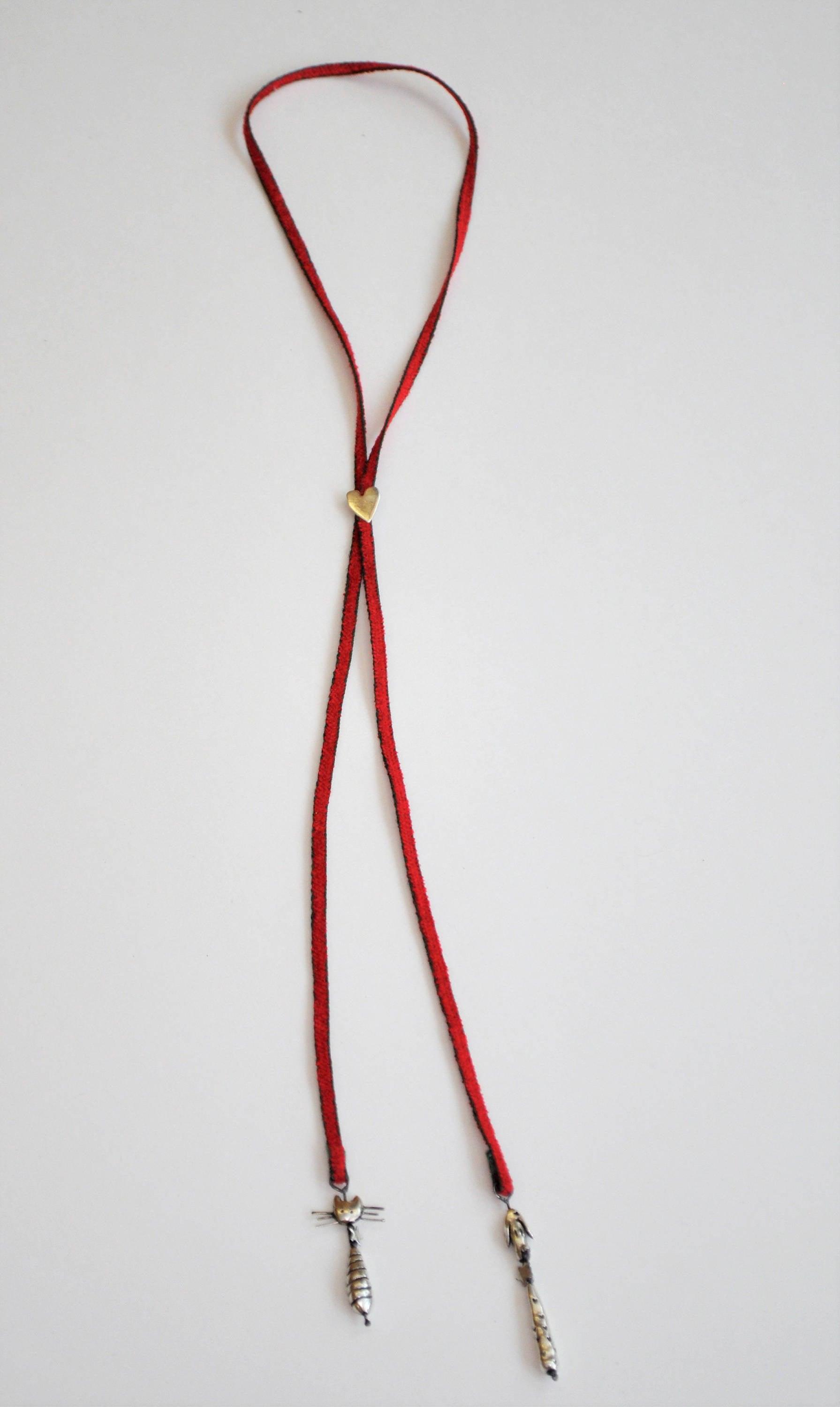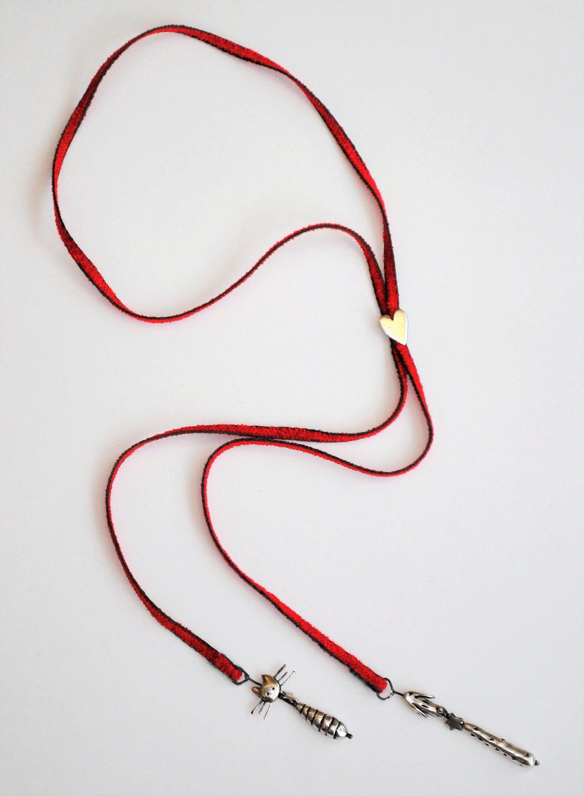 Whimsical Cat & Dog Silver Charms, long Lariat Necklace