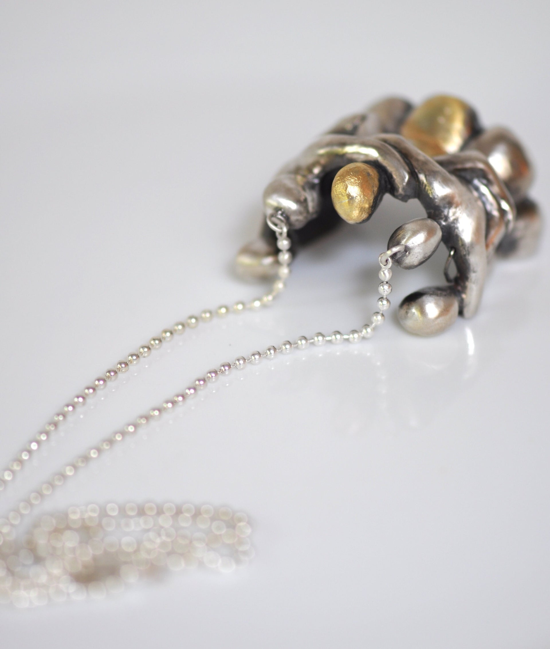 Every piece of contemporary jewelry tells a story, and this necklace is no exception. It celebrates the beauty of the human form and the spirit of teamwork in a stylish and meaningful way. With its intricate design and flawless craftsmanship, this necklace is a must-have for any art lover.