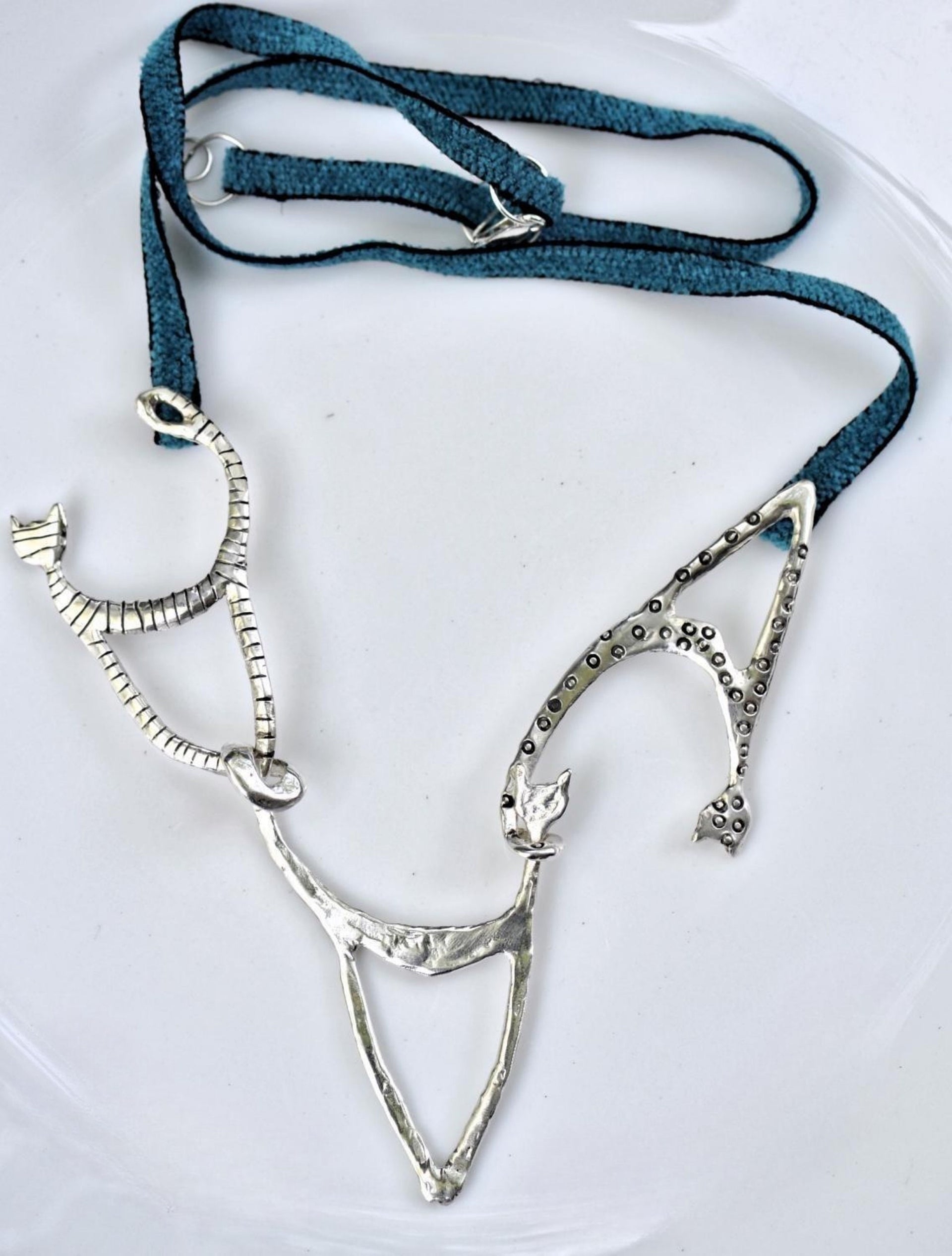 With its whimsical design, this necklace is sure to catch the eye of anyone who sees it. Its funky and fun style makes it a standout piece of jewelry that will add a touch of playfulness to any outfit. Show off your love for cats and stand out from the crowd with this stunning silver cat necklace.