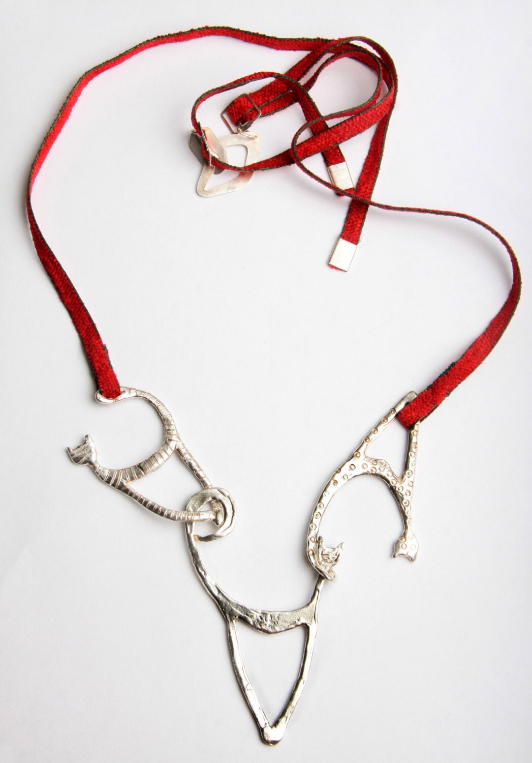 The Whimsical Cat Trio Sterling Silver Necklace is a must-have for any cat lover or fan of unique accessories. Crafted with impeccable detail, this necklace features three charming sterling silver cat pendants suspended from a customizable ribbon. The length of the ribbon can be adjusted to your preferred fit, adding a touch of playfulness and personality to your ensemble.
