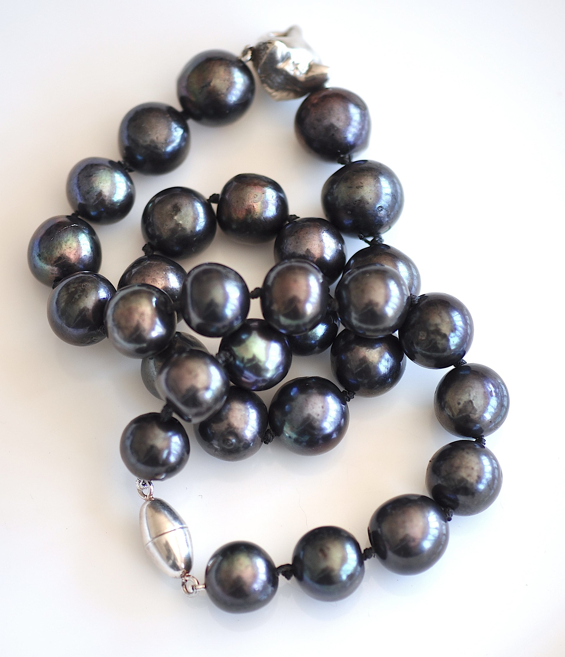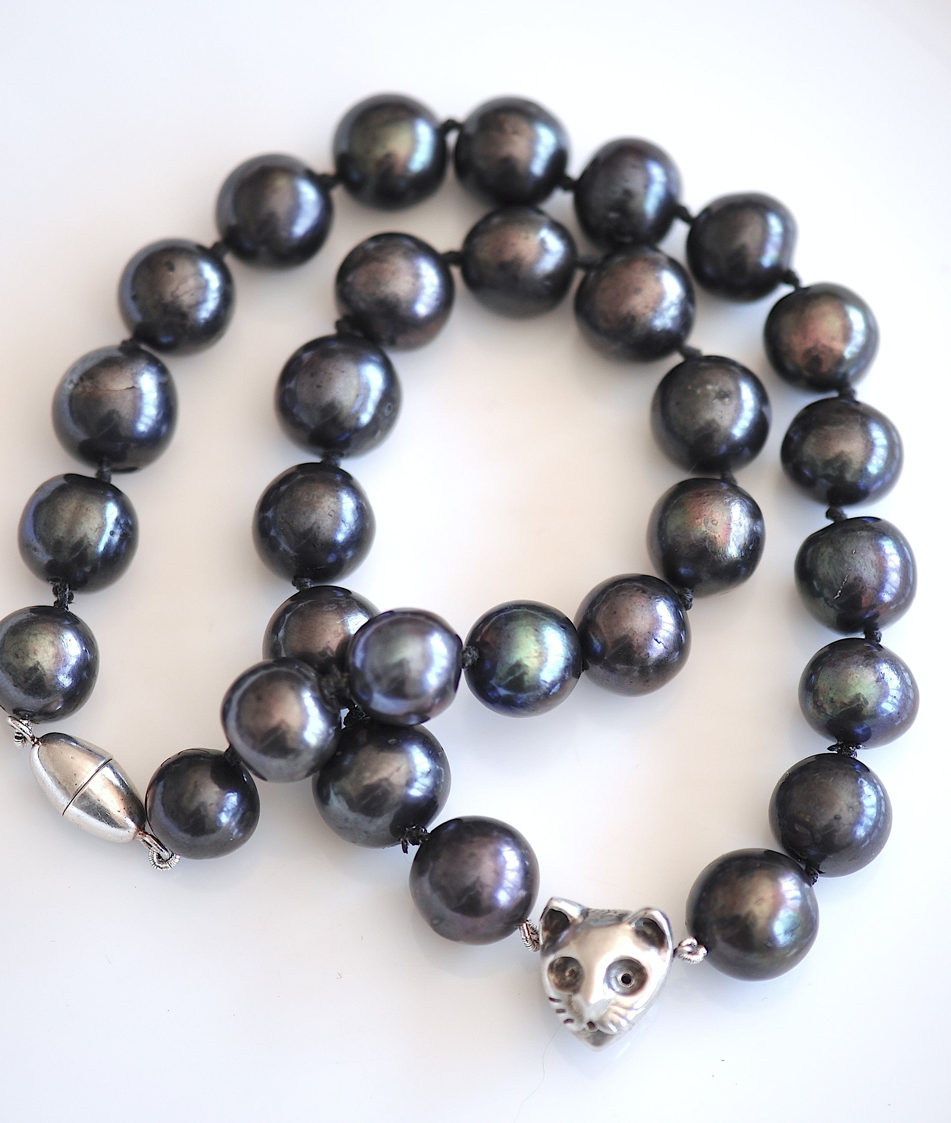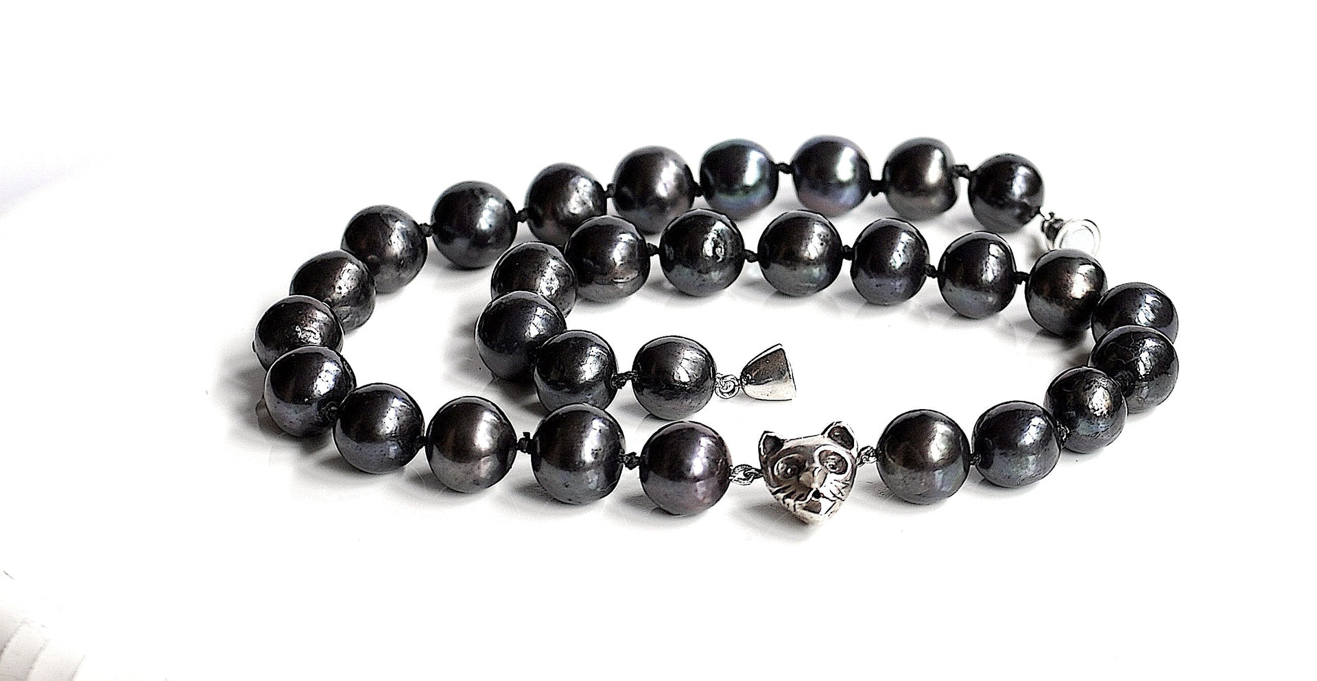 Handmade Cat Charm Black Pearl Necklace
